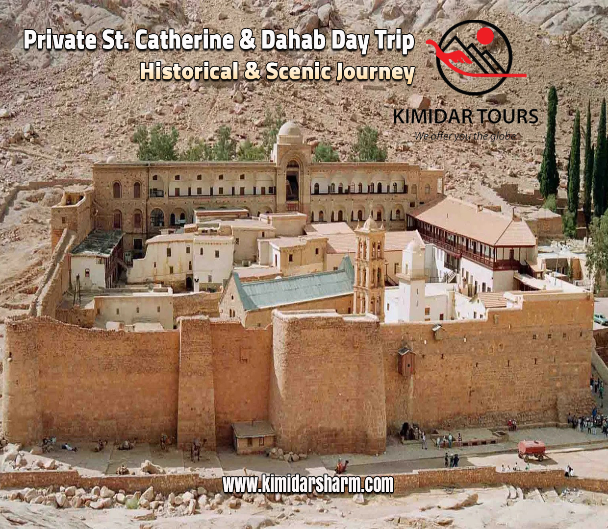 Uncover the desert’s divine beauty with Kimidar! Contact us now to book your Private St. Catherine & Dahab Day Trip — culture, peace, and scenery all in one day.